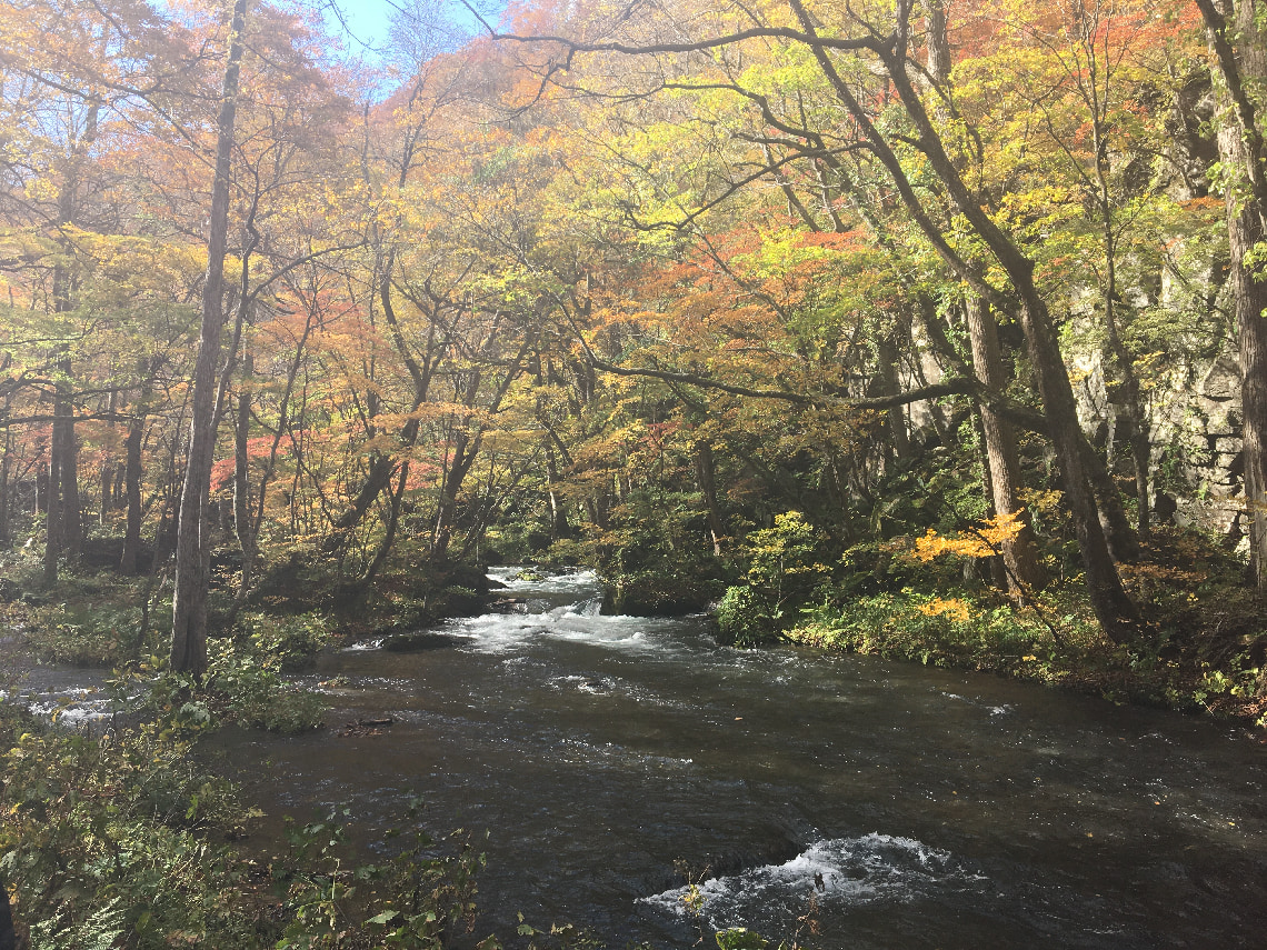 奥入瀬渓流は十和田湖から流れ出し、約14㎞にわたって続きます。秋にはブナやカエデ、ナラなどの木々が色づき、紅葉と清流の美しいコントラストが楽しめます。岩肌を流れる水と紅葉が織りなす景観が見どころの石ケ戸の瀬や、急流が岩を削りながら流れる迫力の景色が印象的な阿修羅の流れなど、渓流と紅葉の風景をお楽しみください。