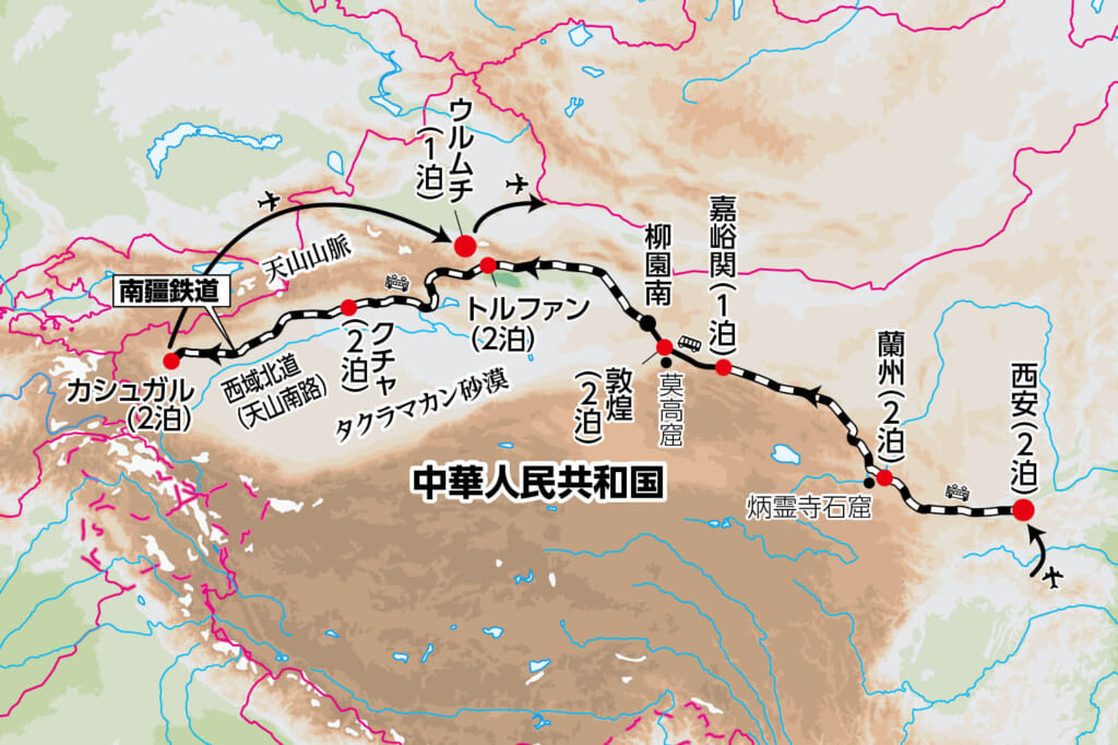 - 高速鉄道とバスを利用し中国シルクロードの要衝を一度に巡っていきます