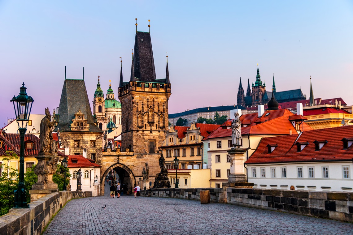 プラハの街の魅力はなんといっても、時代様式が全く異なる様々な建築が溶け合い、独特の都市景観をつくり出している点にあります。また、9世紀に建てられ、かつてはボヘミア王や神聖ローマ皇帝の居城であったプラハ城の城の敷地には旧王宮だけでなくさまざまな見どころがあります。訪れる聖ヴィート大聖堂はヨーロッパ随一のゴシック様式の建物で、ムハ(ミュシャ)が手掛けたステンドグラスは目を見張る美しさで必見です。