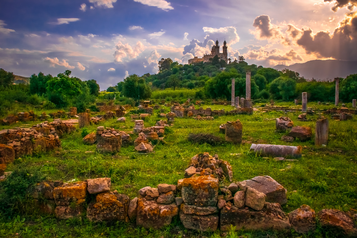 アンナバ近郊のヒッポ・レジウス遺跡は、カルタゴ、ヌミディア、ローマと支配者が変わりながらも繁栄した古都。モザイクが残るローマ都市遺構と、北アフリカ教会史の巨人・聖アウグスティヌスゆかりの地が重なり合い、地中海世界の十字路であったことを物語ります。丘の上にそびえる聖アウグスティヌス聖堂からは、ローマ時代から変わらぬ海の輝きを一望できます。
