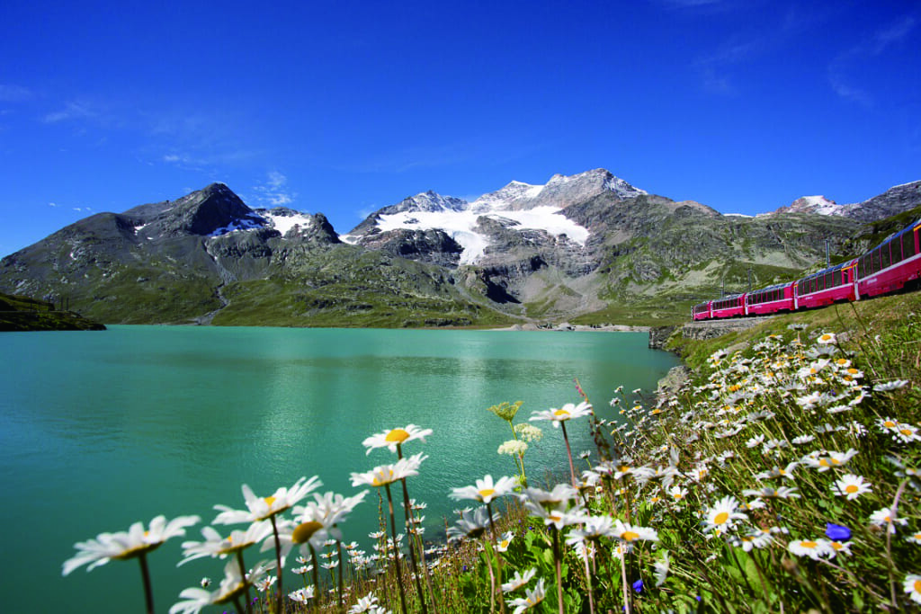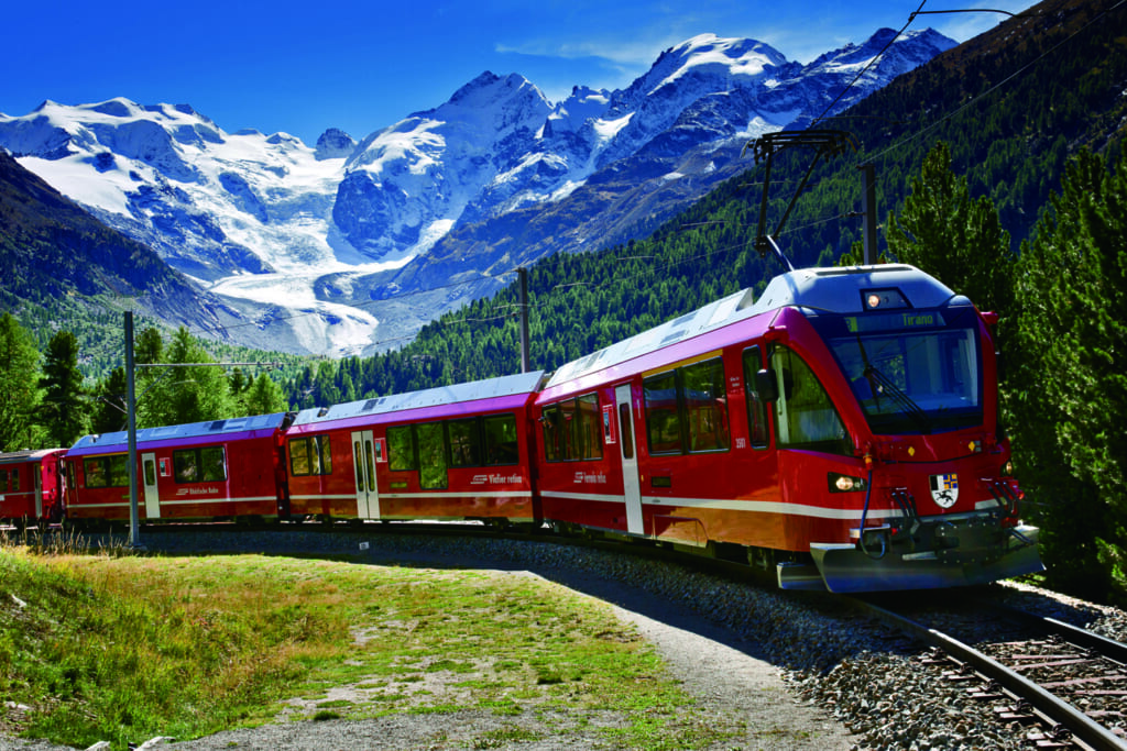 数あるスイスの山岳鉄道の中でも、変化に富んだ景観が味わえる世界遺産のベルニナ鉄道(レーティッシュ鉄道・ベルニナ線)。 サン・モリッツを出発してから、雄大なモルテラッチ氷河やカラマツの美しい森や滝、4000m級の名峰が連なるベルニナアルプスなど、最高地点であるオスピツィオ・ベルニナ(標高2253m)までアルプスの山岳風景を車窓からお楽しみください。