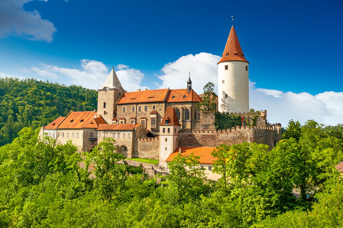 ドイツのマンハイムからチェコのプラハまでおよそ1200kmの道のりには歴史の深い城の数々が見られ、古城街道と呼ばれています。森の中にひっそりと佇むクジヴォクラート城は13世紀にプシェミスル王朝により造られたもので、なかの壮麗なゴシック様式のホールは現在まで外交の舞台として幾度となく使われてきました。また、川を見下ろす高台にそびえるロケット城は要塞としての役割もあった重要なお城。ロマネスク・ゴシック様式の重厚な造りに歴史を感じることができます。