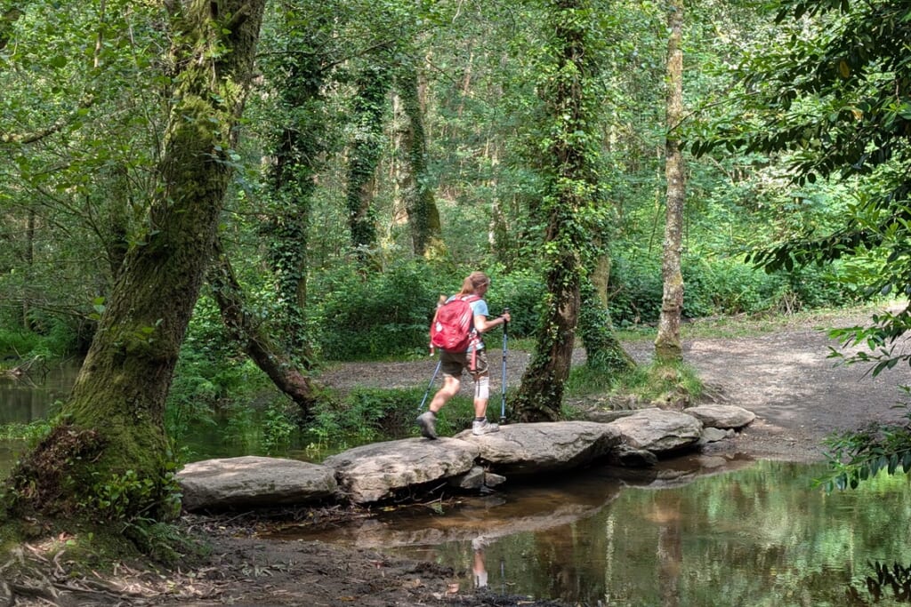 森の中の石橋を渡り、ガリシア地方特有の穀物倉庫(オレオ)を間近で見ながら、ボエンテへ(高低差ややあり。散策の前半は緩い上り、その後は下りと平坦な道)。