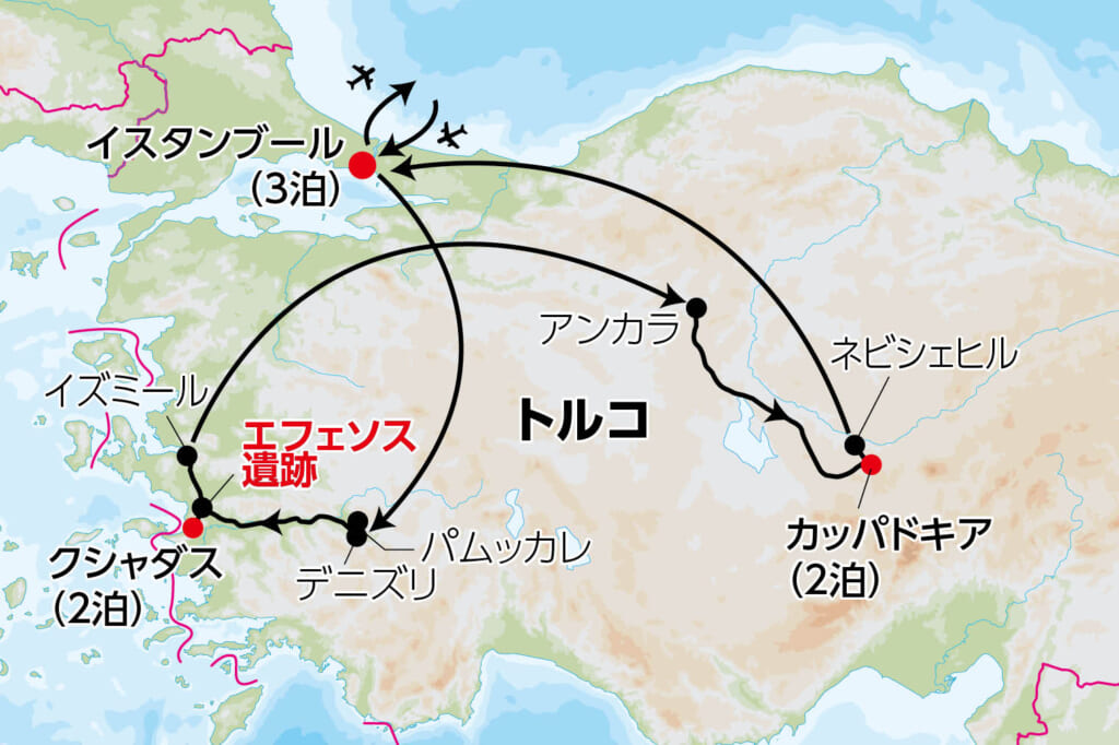 国内線で巡る 連泊滞在トルコ周遊とカッパドキアの旅【9日間】