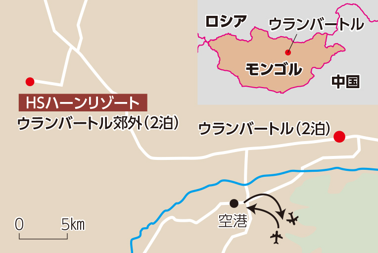※日程表の時刻は、成田空港発着のミアットモンゴル航空の利用を想定したものです。他の航空会社を利用の場合には、時刻および日程は異なります。