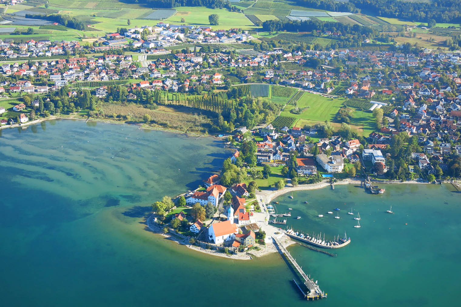 ボーデン湖畔に4連泊し、飛行船での遊覧飛行や「花の島」マイナウ島を訪ねます