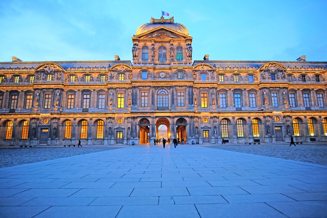 昼とは趣を変えた夜間開館のルーブル美術館へ。来館者が比較的少ない時間帯に、名作の数々を落ち着いて鑑賞します。美術館を出ると、パリの夕景が出迎えてくれることでしょう。