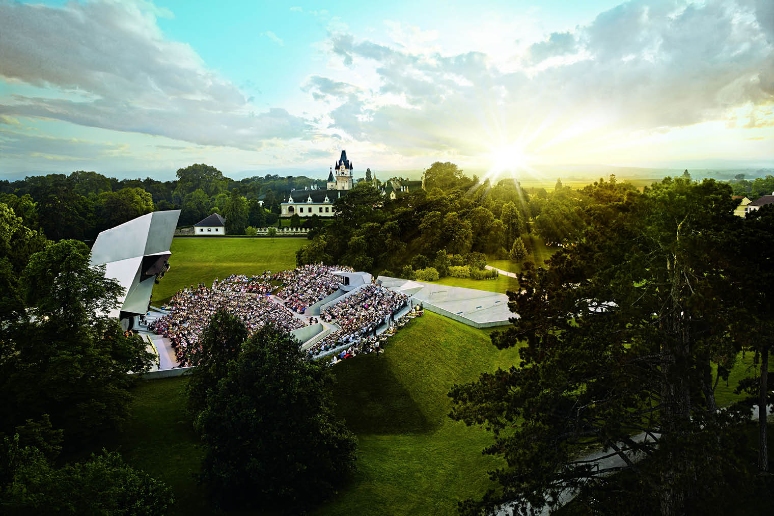 ウィーン近郊で開催されるグラフェネック音楽祭は、ヨーロッパの音楽界で近年注目を集めている音楽祭です。2007年に始まり、2026年は節目となる20回目の開催を迎えます。歴史ある城の庭園に設けられた現代建築ヴォルケントゥルムを主会場に、自然と一体となった開放的な音楽空間が生まれるのが大きな特徴で、伝統と格式を誇るザルツブルク音楽祭とは対照的に、自由で創造的な雰囲気の中、世界トップクラスの演奏を間近に体感します。