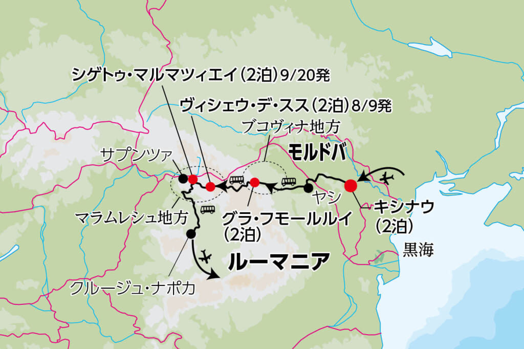 ・7日目に上記に加えブルサナ修道院も訪問します。但し、デセシュティ教会、シュルデシュティ教会、プロピシ教会は訪れません。