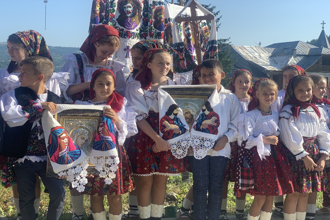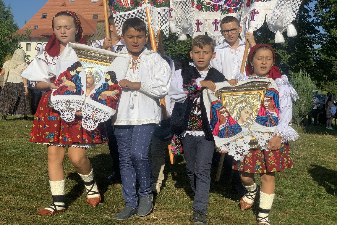 毎年8月14日の夕方から8月15日にかけて、マラムレシュ地方のモイセイ村で行われる聖母マリア被昇天祭。マラムレシュ地方をはじめ周辺地域の村々から人々が民族衣装を着て参加するため、まるで民族衣装の博物館のようです。小さな村が様々に着飾った人々であふれる、華やかな1日となります。