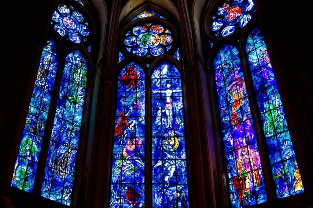 5世紀の洗礼に始まり、約千年に渡りフランス王の戴冠式が行われてきたランス大聖堂。20世紀にはシャガールがステンドグラスを制作し、聖書の物語を鮮やかな色彩で表現しました。中世と現代の美術が共存する空間です。