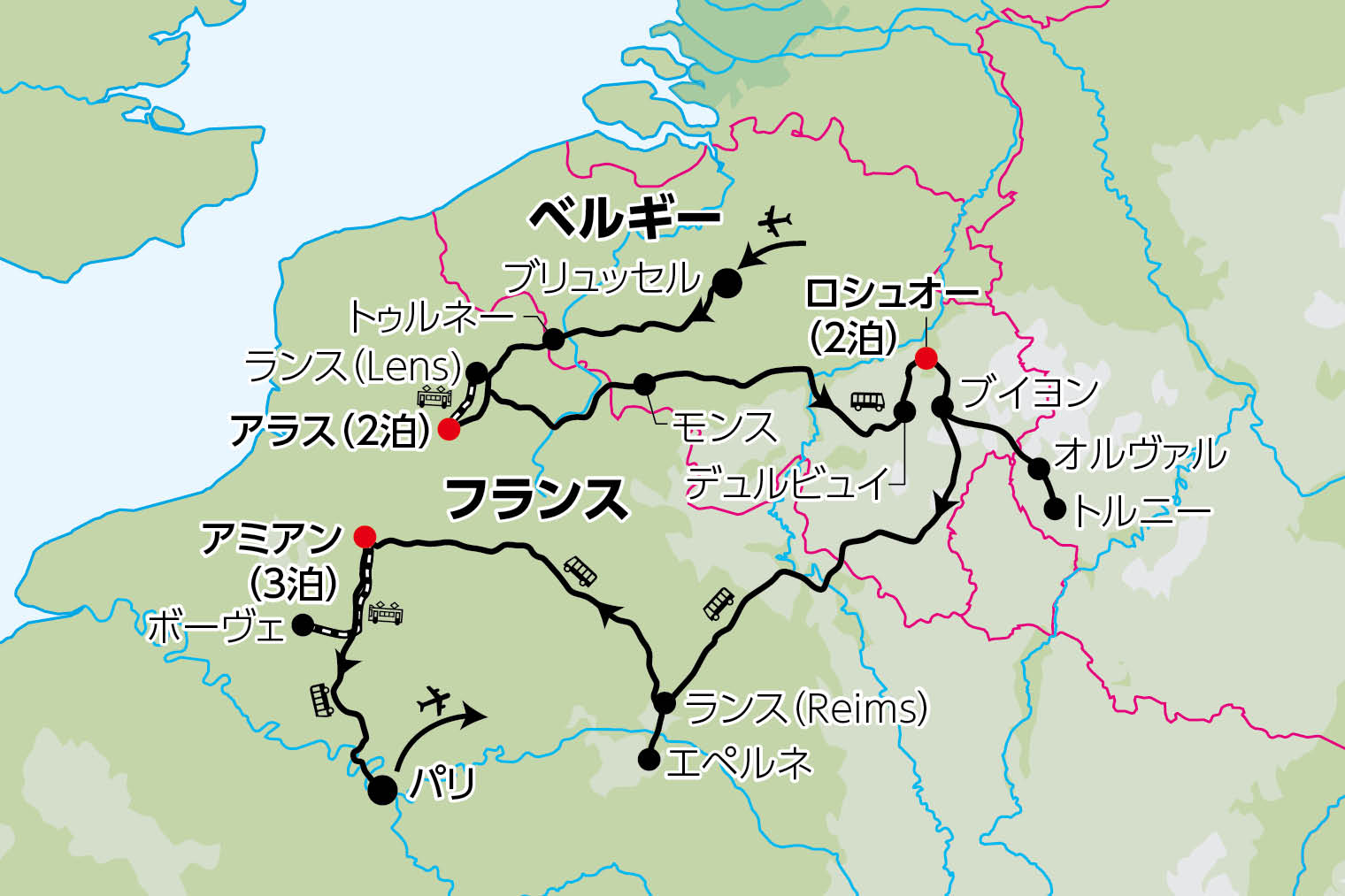 アラス08:30発 モンス デュルビュイ ロシュオー16:30着