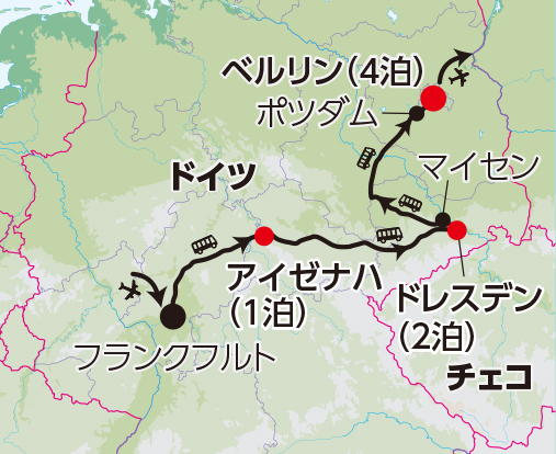 ドイツ文化の原点ともいえるアイゼナハやバッハゆかりのライプツィヒなど珠玉の町々を巡ります。