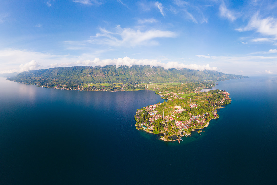 - 世界最大のカルデラ湖・トバ湖のスケールを体感 ボートで島を巡り、シトゥムルンの滝へ