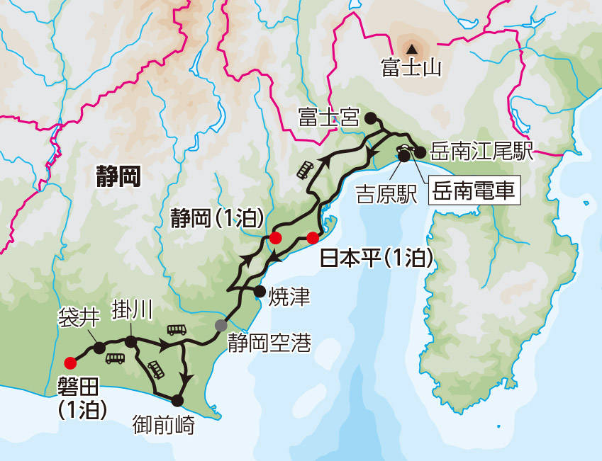 静岡08:30発 岳南江尾駅 吉原駅 岳南江尾駅 富士宮 日本平16:00頃