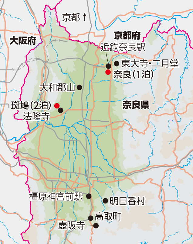 ※現地合流・離団:近鉄奈良駅合流(出発)/橿原神宮前駅離団(帰着) 旅行代金から¥3,000引きとなります。