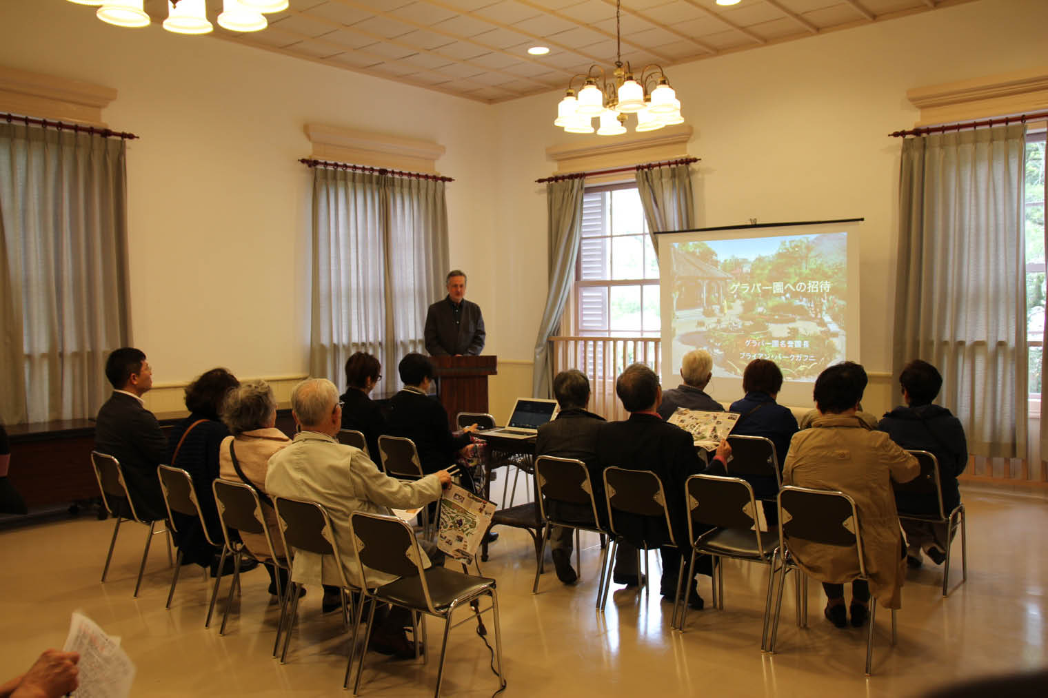 今回は、グラバー園の名誉園長バークガフニさんが、特別に園内を同行案内。特別カルチャー講座とともにグラバー園をお楽しみいただきます。