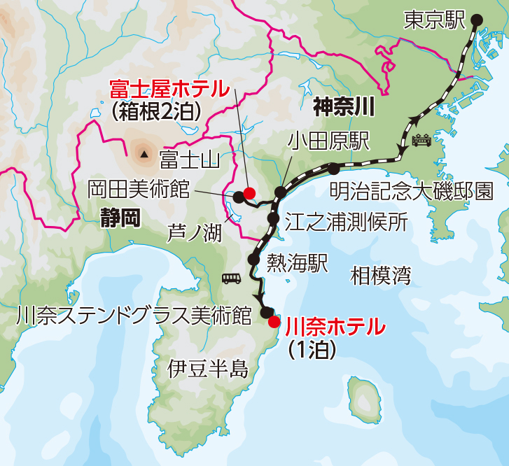 - 江之浦測候所や岡田美術館、川奈ステンドグラス美術館を訪問。各訪問地のアートスポットを巡ります。