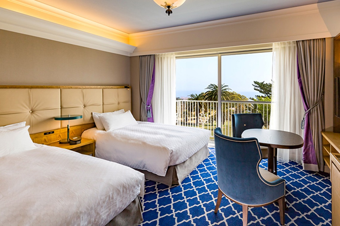 - 川奈ホテルではオーシャンビュールームに宿泊。クラシックディナーをご用意しました。