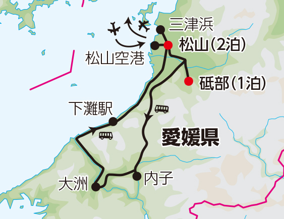 ※現地合流プラン:松山空港合流(出発)/松山空港離団(帰着) 旅行代金より¥32,000引き