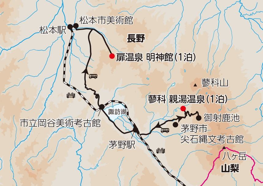 現地合流プラン:茅野駅合流(出発)/松本駅離団(帰着) 旅行代金より¥10,000引き