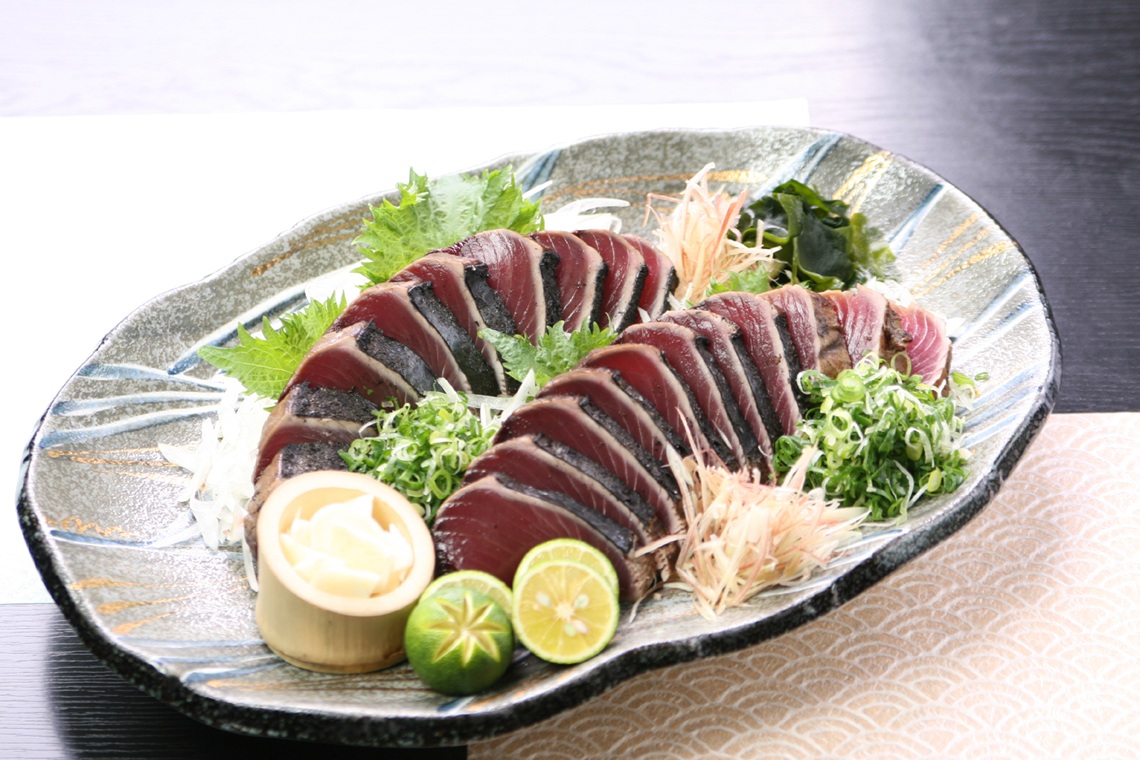 「黒潮本陣」は雄大な太平洋を一望する高台の上、絶好のロケーションに位置しています。客室はもちろん露天風呂からも、眼下に海原が広がります。太平洋の海水を汲み上げて沸かした宿の名物「汐湯」に浸かって、ゆっくりとおくつろぎください。夕食は、高知の名物「鰹のわら焼きタタキ」をご用意しています。