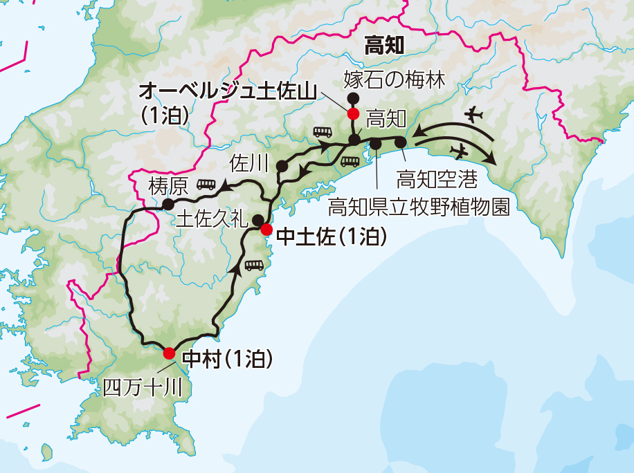 ※現地合流プラン:高知空港合流(出発)/高知空港離団(帰着) 旅行代金から¥40,000引きとなります。