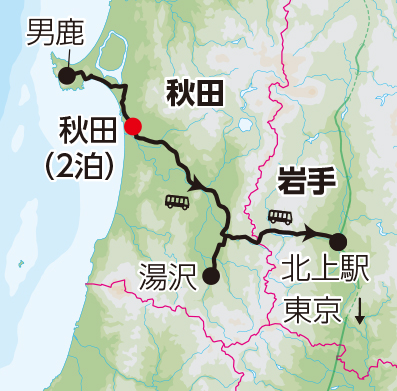 現地合流プラン:秋田駅合流(出発)/北上駅離団(帰着) 旅行代金より¥34,000引き