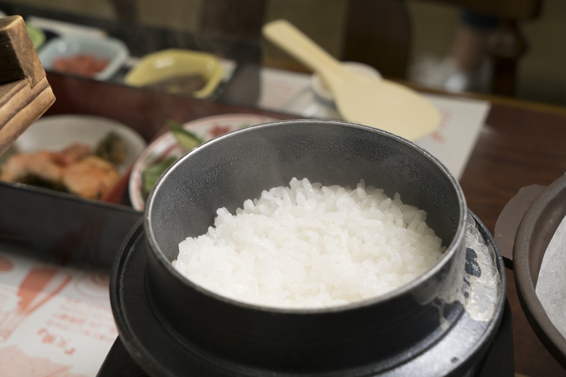 「銀の朏」という米はあまり聞き馴染みのない名前かもしれませんが、「あなたが選ぶ日本一おいしい米コンテスト」など多くの米の大会で日本一に輝いているブランド米です。2000年に下呂市でコシヒカリの中から発見された《いのちの壱》という品種のお米を、飛騨地方山間地の生産者が独自に定めた栽培基準に則って栽培したものが「銀の朏」であり、限られた地域でしか出回らない幻の米と言われています。コシヒカリの1.5倍という大粒で甘い米は一度召し上がっていただきたい味です。今回は、舞台峠のレストランにて、銀の朏とともに名物の朴葉味噌焼きをご用意しました。