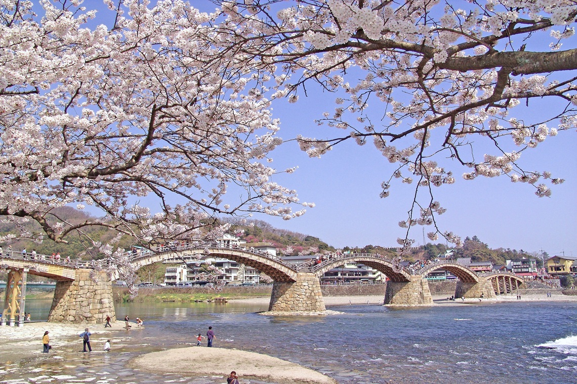 日本三名橋の一つ、錦帯橋は桜の名所としても知られ、見頃となる4月上旬には錦川の河畔に約1500本の桜が咲き誇ります。また清流新岩国駅から錦町駅までの錦川清流鉄道ローカル列車の旅では、沿線の桜並木と眼下を流れる錦川の清流をお楽しみください。