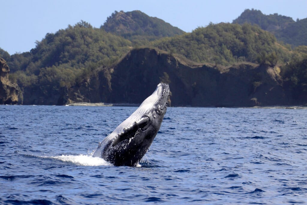 小笠原の海は、陸からの眺めはもちろん素晴らしいのですが、海の中も同様に魅力に溢れています。3月は、ザトウクジラが繁殖・子育てのために遠く北の海からやってきます。繁殖の時期には、ブリーチングと呼ばれるジャンプや胸びれ・尾びれで海面を叩くなどのアクションが見られることも。圧倒的な風格と迫力で見る者の心を揺さぶります。