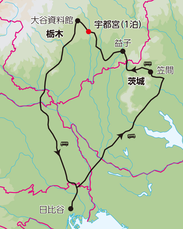 宇都宮 09:00発 (大谷資料館) 日比谷 17:00着