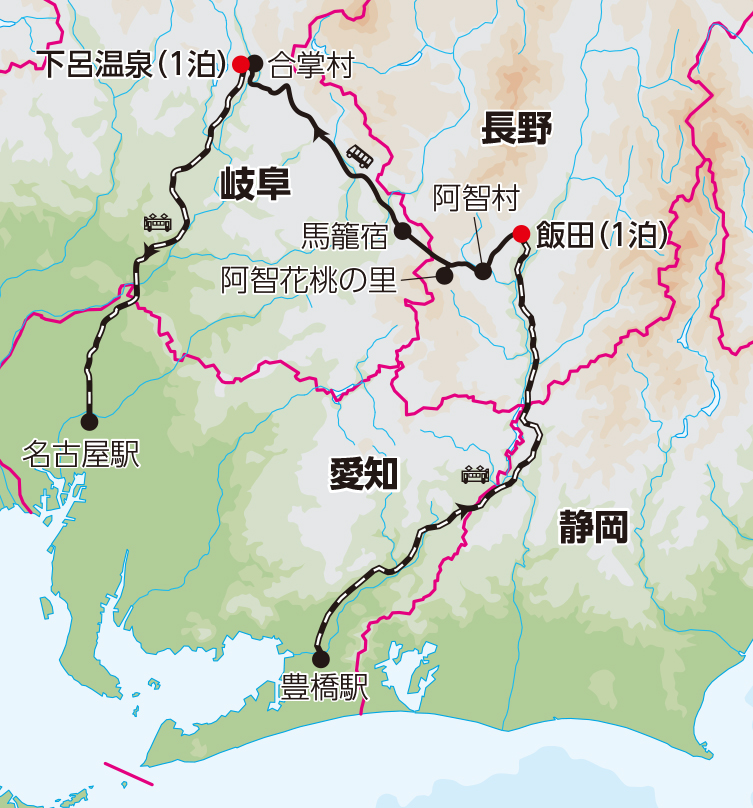 ■午前、路線バスにて●合掌村へ。円空館にご案内します。 ■午後、下呂駅よりJR特急にて名古屋駅へ。 ■名古屋駅着後、解散。 |
