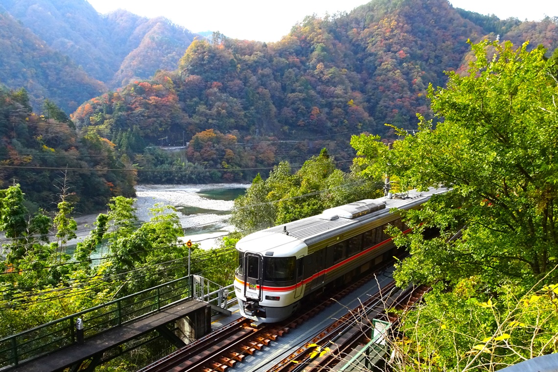 鉄道愛好家が選ぶ「日本の秘境駅ランキング」トップ100に、常に10駅程度がノミネートされる秘境駅の多い鉄道、飯田線。天竜川渓谷を背景に、ポツンポツンと昔ながらの小さな駅舎が現れる様子は、ノスタルジックな昭和の鉄道風景を思い出させてくれます。車窓に映る天竜川の渓谷美も素晴らしく、乗車中、カメラから手を離すことができないほどです。今回はより車窓からの景観を楽しめるよう、天竜渓谷側の風景が順光となる午前中の乗車としました。車窓を流れゆく絶景をご覧ください。