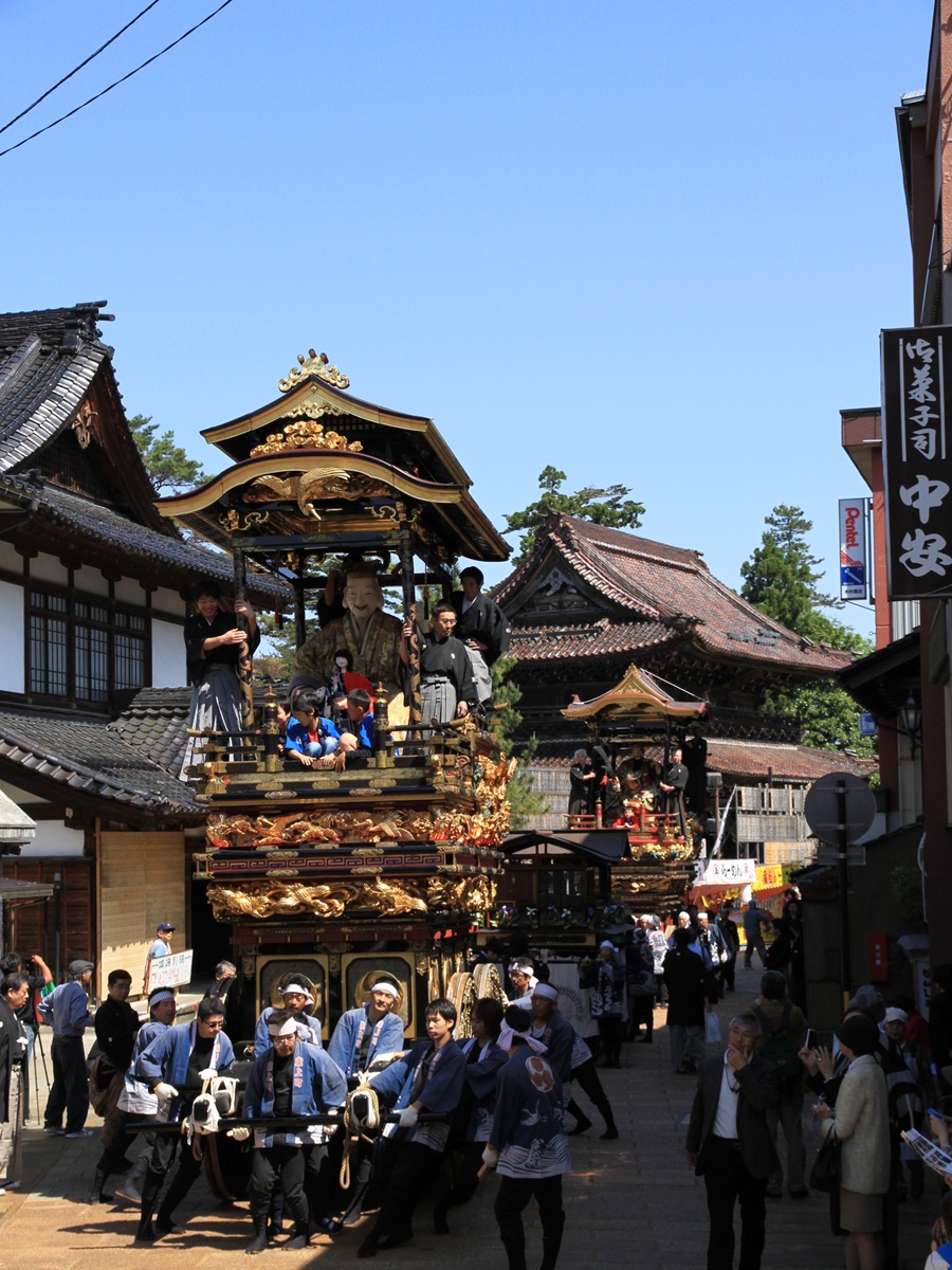 ■バスにて能登へ。羽咋の●妙成寺を見学し、七尾へ。 ■七尾では、巨大な「でか山」が曳かれる青柏祭を見学します。 ■午後、城端へ。早めの夕食後、城端曳山祭の宵祭り。夜の提灯が灯された曳山を見学して、金沢に戻ります。 (金沢泊) |