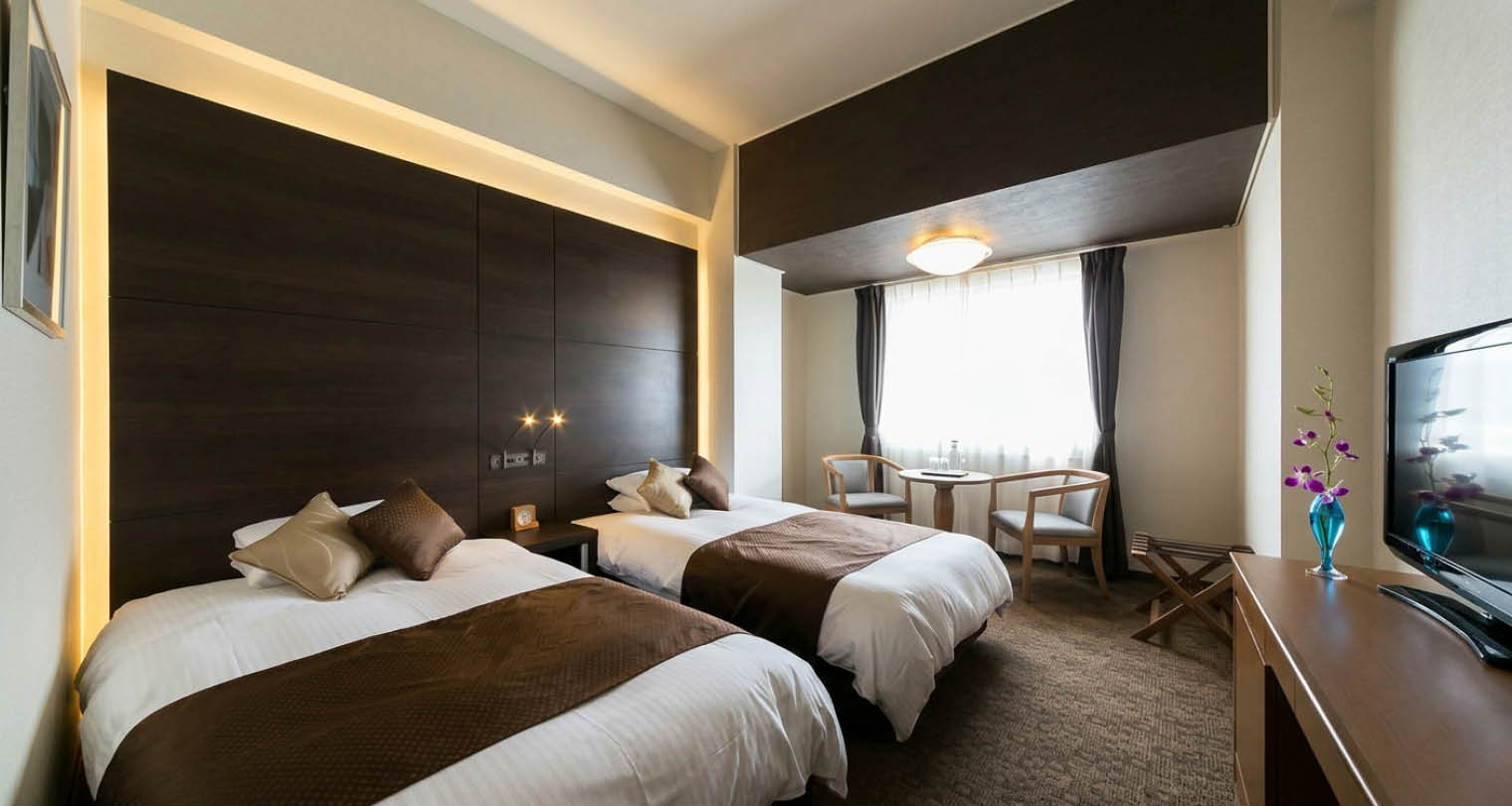 市内にホテルはいくつかありますが、中でも離島ターミナルの目の前に位置する「南の美ら花ホテルミヤヒラ」にてご用意しました。お部屋も24平米で、館内には大浴場やレストランなどの施設も充実しております。また、町の中心「ユーグレナモール」や飲食店やコンビニへも徒歩5分程度の立地です。