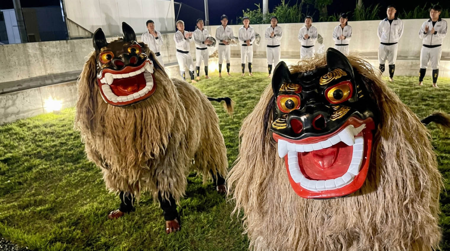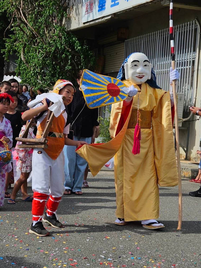 お盆の期間が明けると、厄払いの獅子舞が披露されます。沖縄では古来より、新年などには獅子舞いが登場、獅子舞いに噛まれると厄が落ちるといわれます。子どもたちが「れーるれ、れーるれ」と獅子を呼び、三線や太鼓に音に合わせて獅子が躍動する様子をお楽しみください。