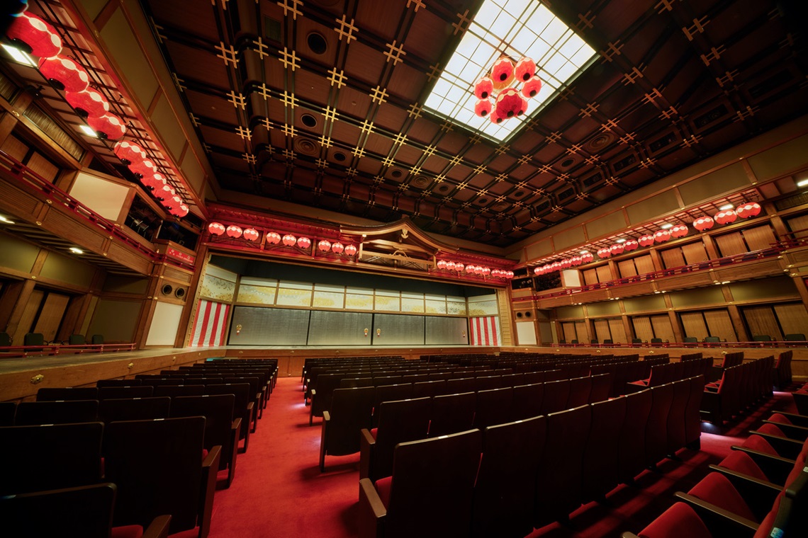 総ヒノキ造りの歌舞練場本館。客席に加え花道も開放されています。