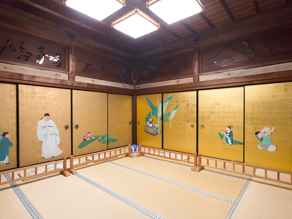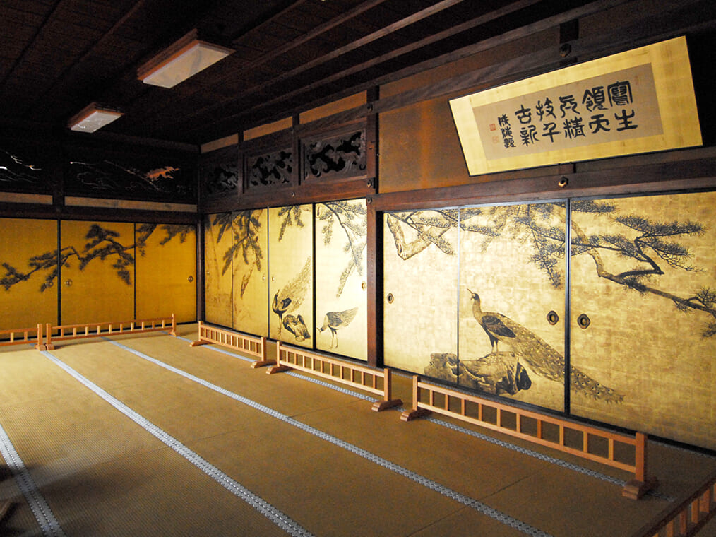 大乗寺は、円山応挙やその一門が描いた襖絵が多く残ることから、応挙寺の名で親しまれています。襖絵だけでも素晴らしいですが、そこにとどまらず襖を開けても閉めても絵柄が乱れることなく、次の部屋の景色へとつながるように設計されており、客殿全体で曼荼羅の世界を表現しています。近年では、画筆だけでなく、円山応挙の緻密かつ繊細に計算された空間プロデュース力が再評価されています。原画は保存されており、見学できるのは「高精細複製」のものです。