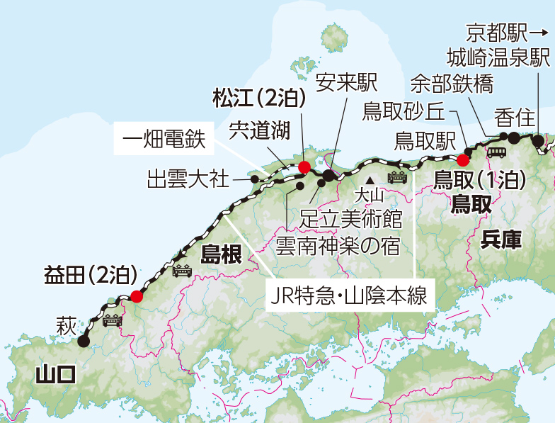 - 京都から山口へ。日本海沿いを結ぶ鉄道絶景ルート、山陰本線の旅を満喫。