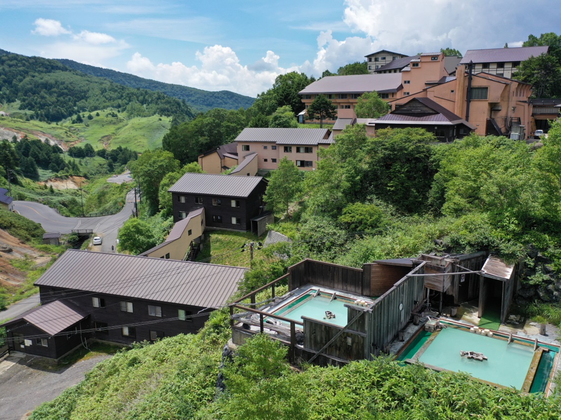 群馬県を代表する草津温泉から、志賀草津道路をドライブしながら標高を上げていくと、長野県との県境近くに位置するのが万座温泉です。標高1800メートルで、通常100メートル標高を上げると0.7度気温が下がるといわれていますので、単純計算すると、東京や大阪が30度のとき17.4度の別天地。さらにこの地を別天地にしているのが、白濁した硫黄泉を豊かに湛えた絶景の露天風呂です。この「天空の温泉郷」に連泊。爽涼の夏をお楽しみください。