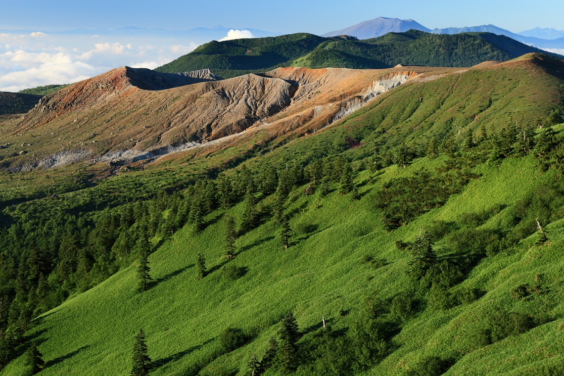 ■終日、万座高原、志賀高原のドライブを楽しみます。 ■まずは、白根山を眺めながら志賀草津道路をドライブ。2172メートルの日本の国道最高地点を通り、群馬、長野の県境となっている「渋峠」へ。 ■ここからは志賀高原と呼ばれます。 ■横手山では、珍しい山岳エスカレーターのスカイレーターとスカイリフトを乗り継ぎ、○満天ビューテラスへ。(注) ■その後、もうひとつの展望台、○東館山展望台を訪ね、○東館山高山植物園を散策(注)。 ■昼食は、奥志賀高原の「ホテルグランフェニックス奥志賀」にて。 ■午後、万座高原を下り、草津温泉へ。 (草津温泉泊) |