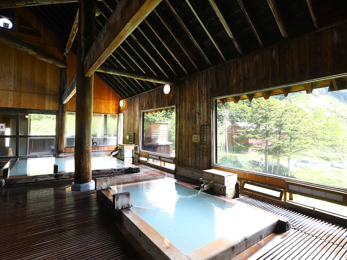 万座温泉にはゆっくりと2泊滞在。ホテルから温泉の周辺にはいくつかの散策路が整備されているので、ぜひ散策をお楽しみください。そして、万座温泉に来たらおすすめしたいのが露天風呂巡り。温泉郷に建つ数軒のホテルは、そのほとんどが立ち寄り湯OKです。それぞれのホテルが複数のお風呂を持っているので、合わせて20カ所以上のお風呂があります。各露天風呂からは違った絶景が望め、泉質も少しずつ違います。まさに、温泉好きの別天地。湯あたりにはくれぐれもご注意を。